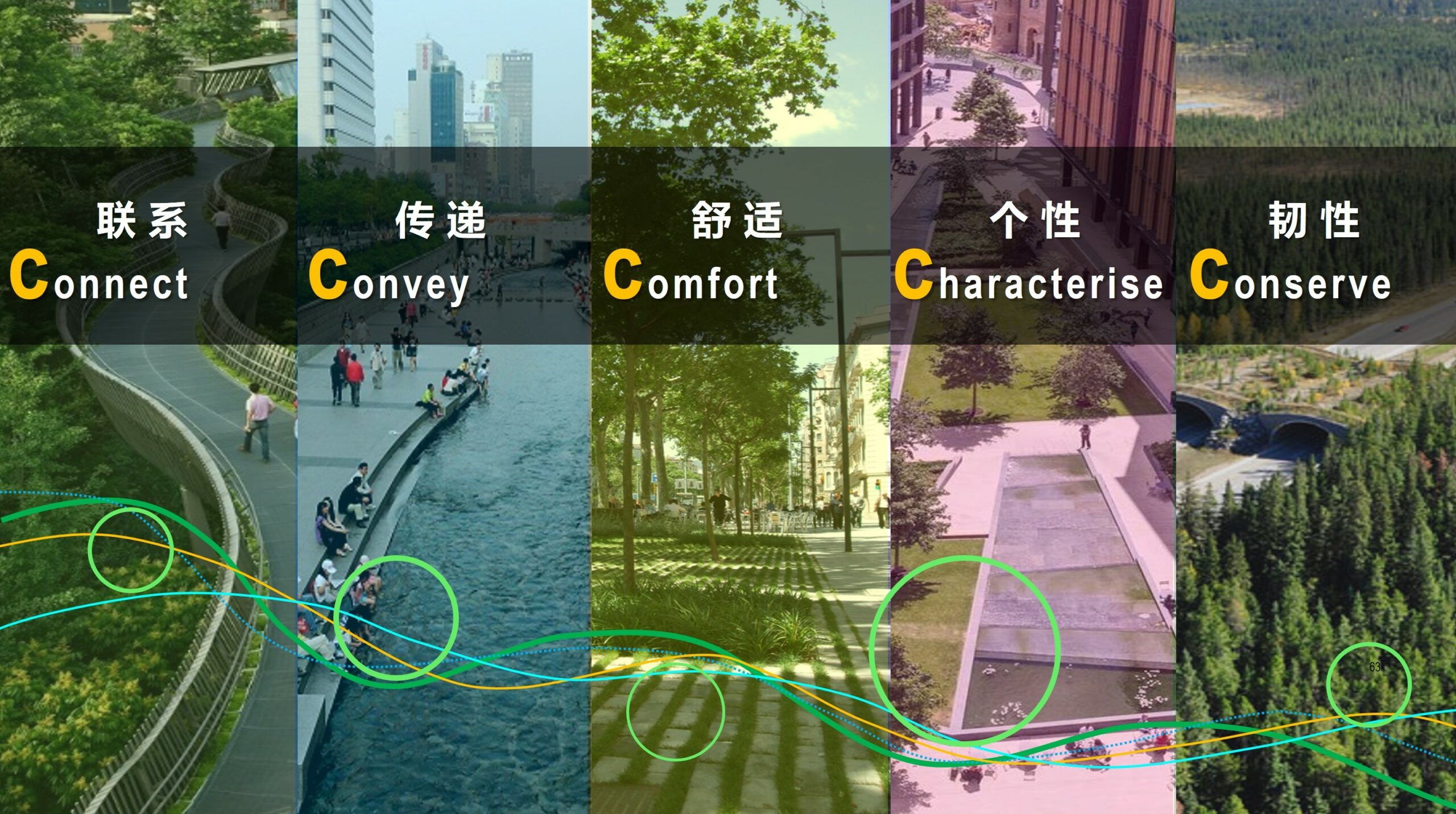 Characterise – By using landscape planning and design elements to strengthen district and neighbourhood features, respective to each district, street, park and green corridor.