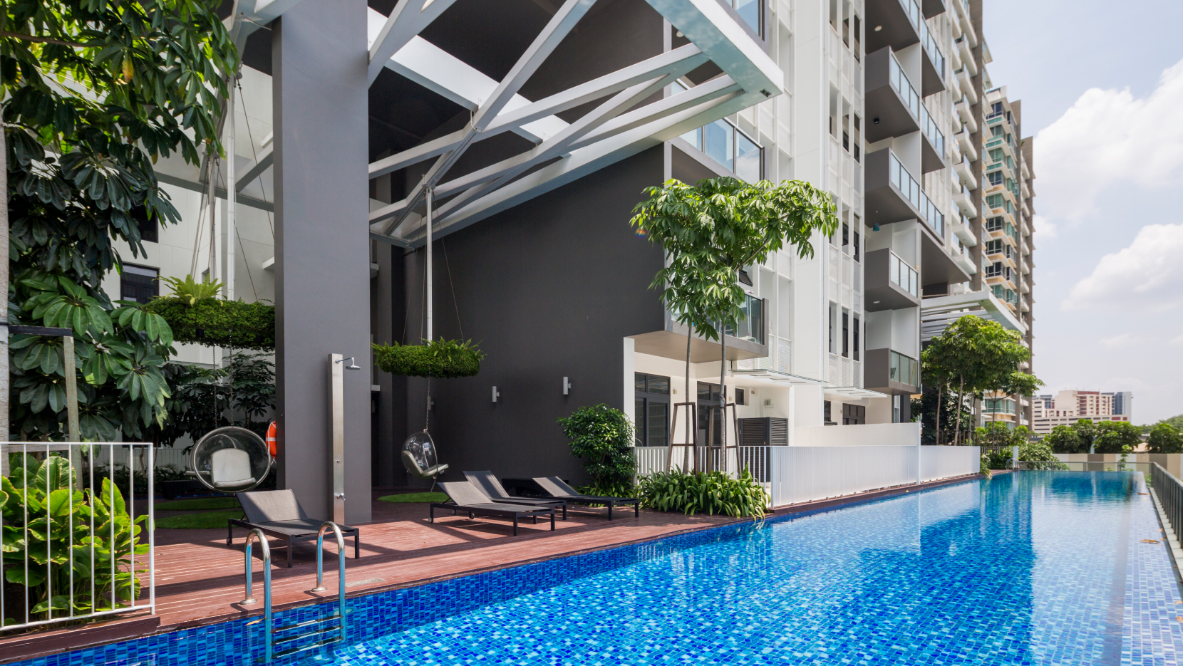 The 15-storey building is framed by sleek architectural lines and packed with pockets of lushly landscaped terraces with a niche.