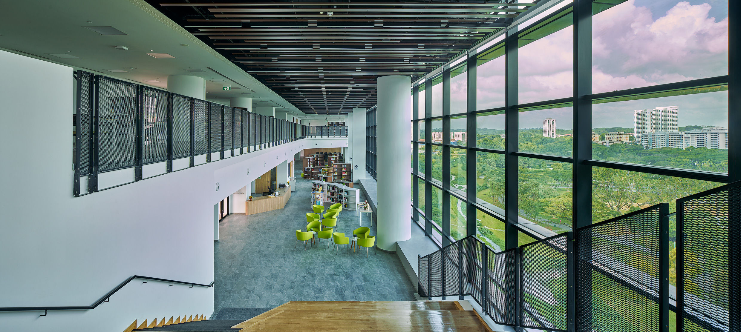 Capitalising on its proximity to the park, the double-volume resource library is strategically positioned on Levels 9 and 10, providing a sweeping connection with the external landscape, while forging a conducive space to support learning and research.